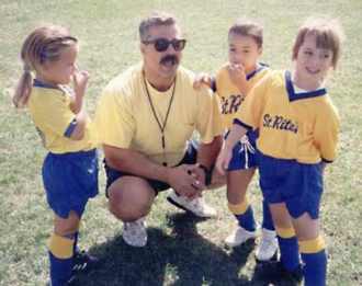 Coaching his daughters soccer team
